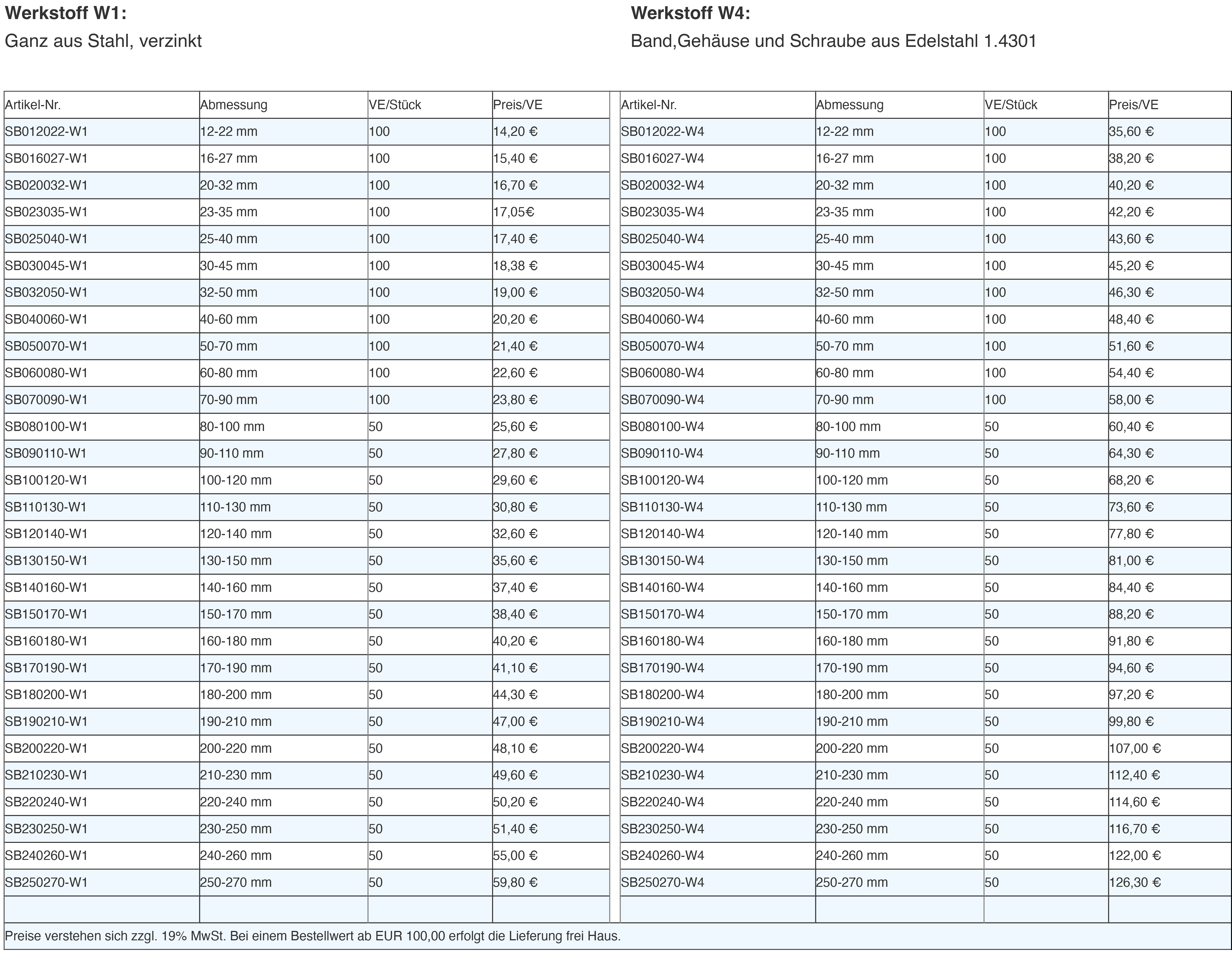 Werkstoff W4: Band,Gehäuse und Schraube aus Edelstahl 1.4301 |